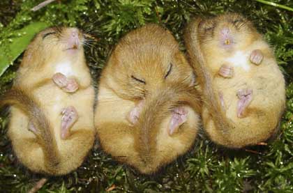 Zurück zu den Haselmäusen. Es sind Säugetiere genau wie wir. Naja, vielleicht nicht ganz wie wir, aber morgens könnte ich eigentlich auch mal so liegen bleiben. Wäre doch nicht schlecht, oder? Aber nein, statt dessen mache ich mich jeden morgen auf meinen knapp einstündigen Weg in die Firma ("zu auf Arbeit") mit der phantastischen Kantine, bei der ich meine mühsam erlernten "Imbissdeutsch-Vokabeln" gar nicht anbringen kann.