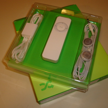 iPod shuffle? Finde ich von der Idee her sogar recht gut. Grad beim joggen oder im Fitness-Studio sicher keine schlechte Idee.